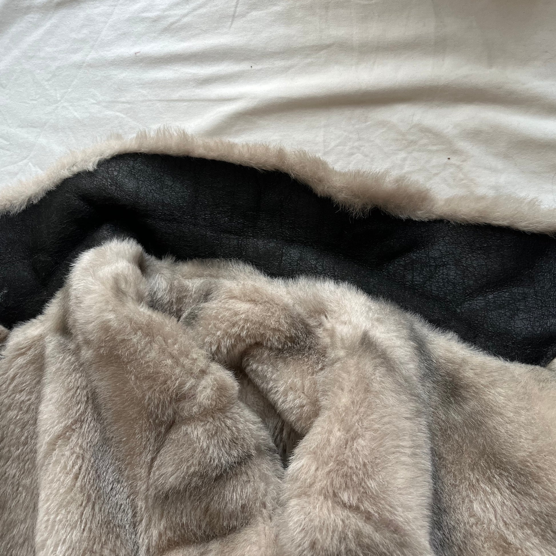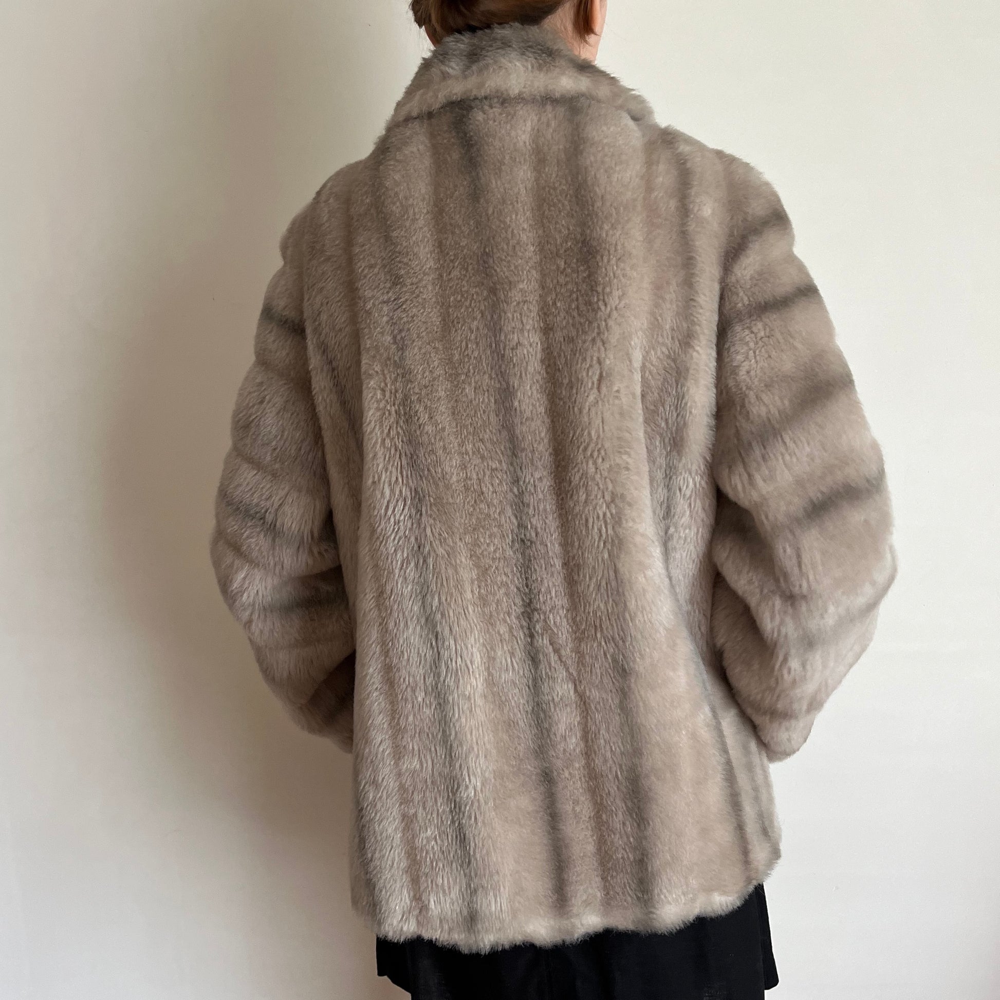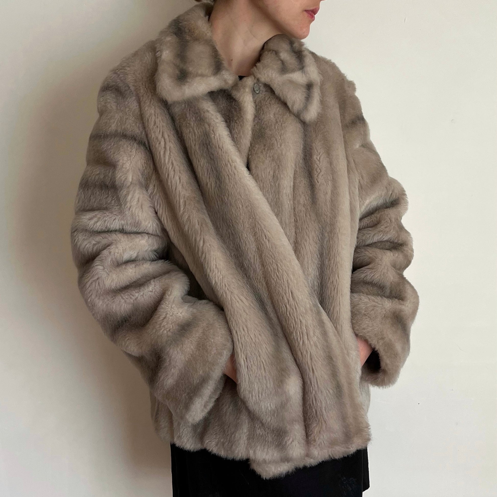 feito no Estados Unidos, em pelagem sintética, forro texturizado com padrão floral, bolsos frontais, fecho em gancho. excelente estado de conservação, apresenta leves manchinhas naturais do tempo no forro.