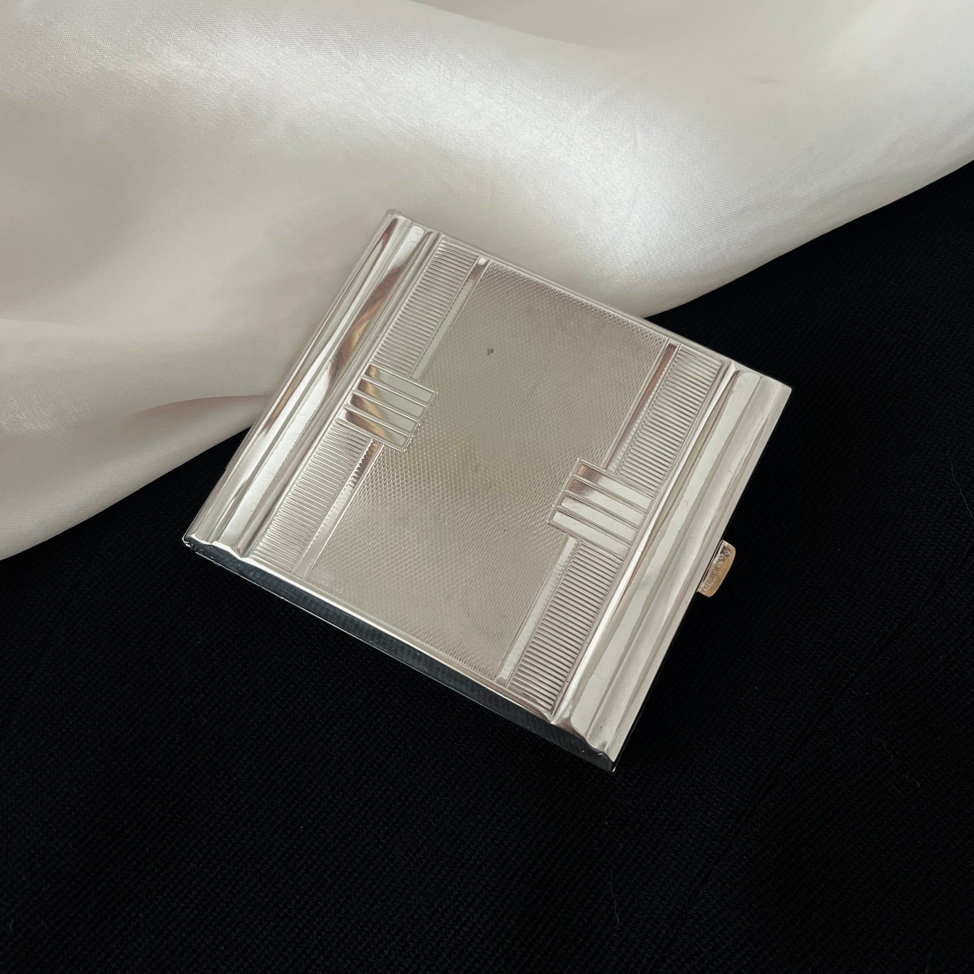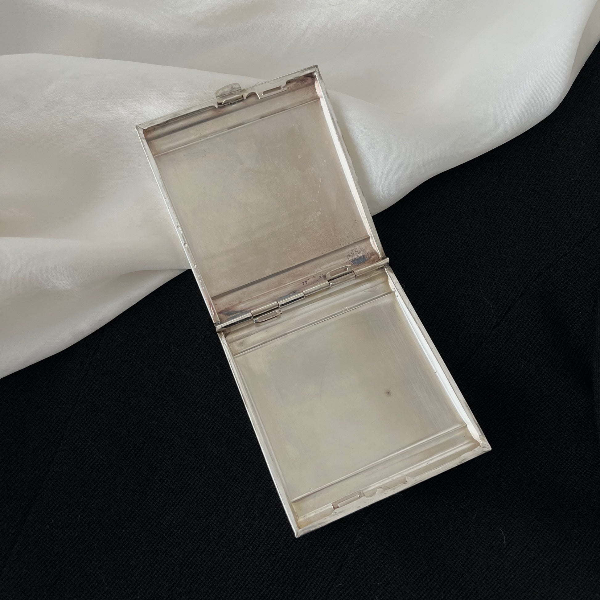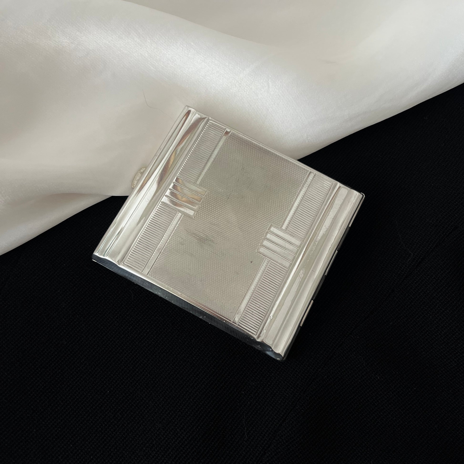cigarreira vintage em metal espessurado a prata. da clássica marca Wolff, anos 50. em excelente estado de conservação.