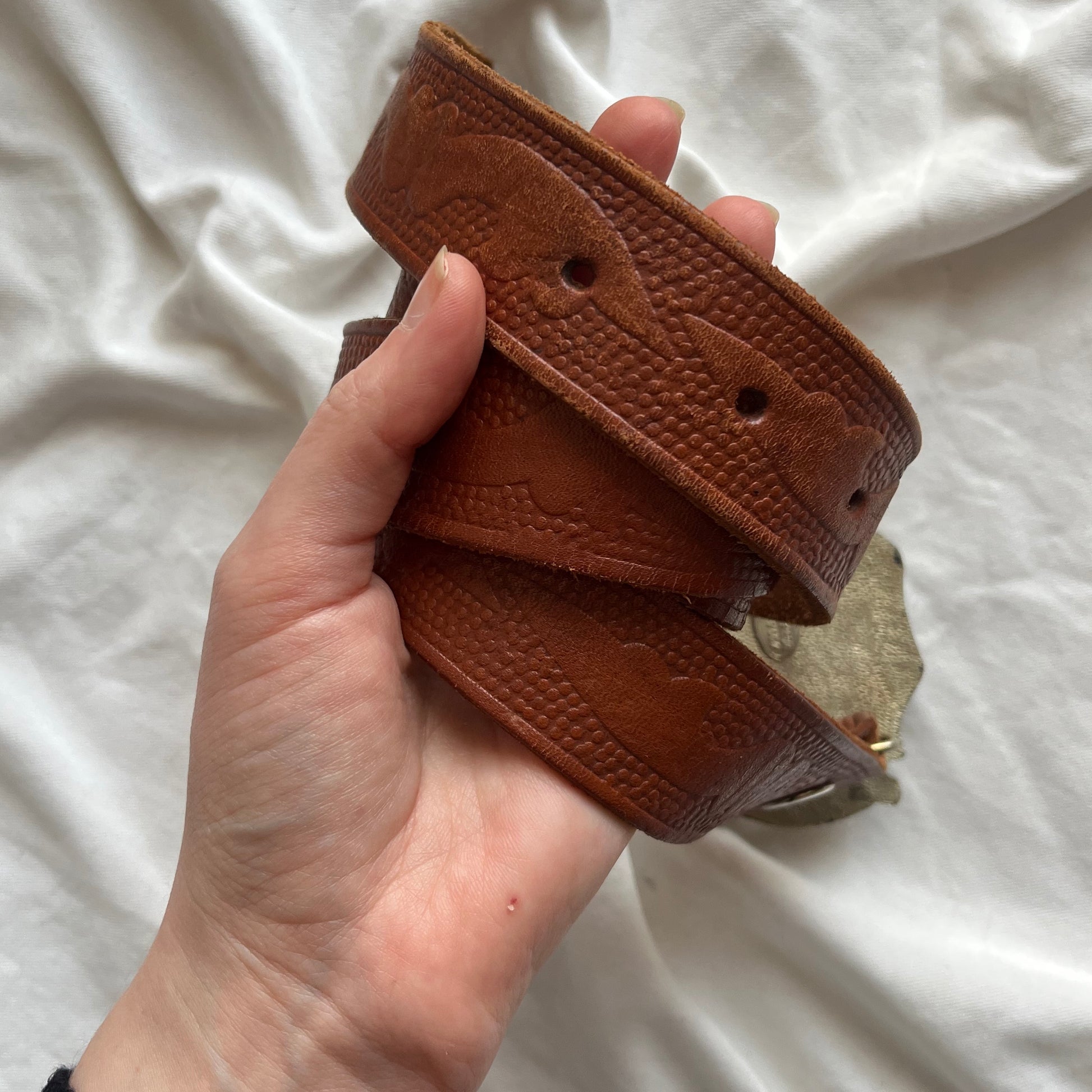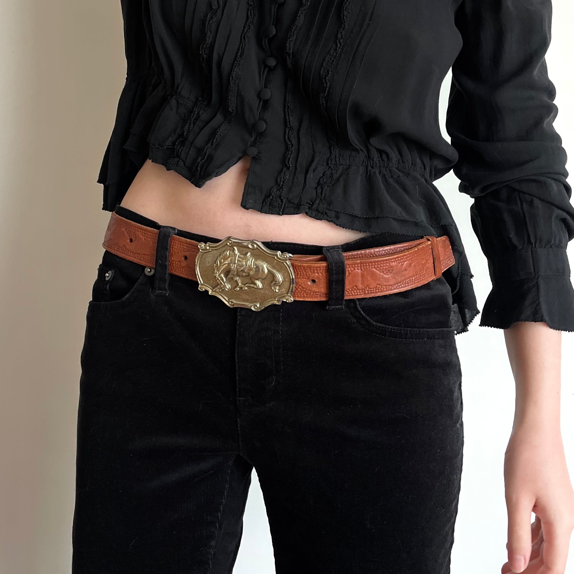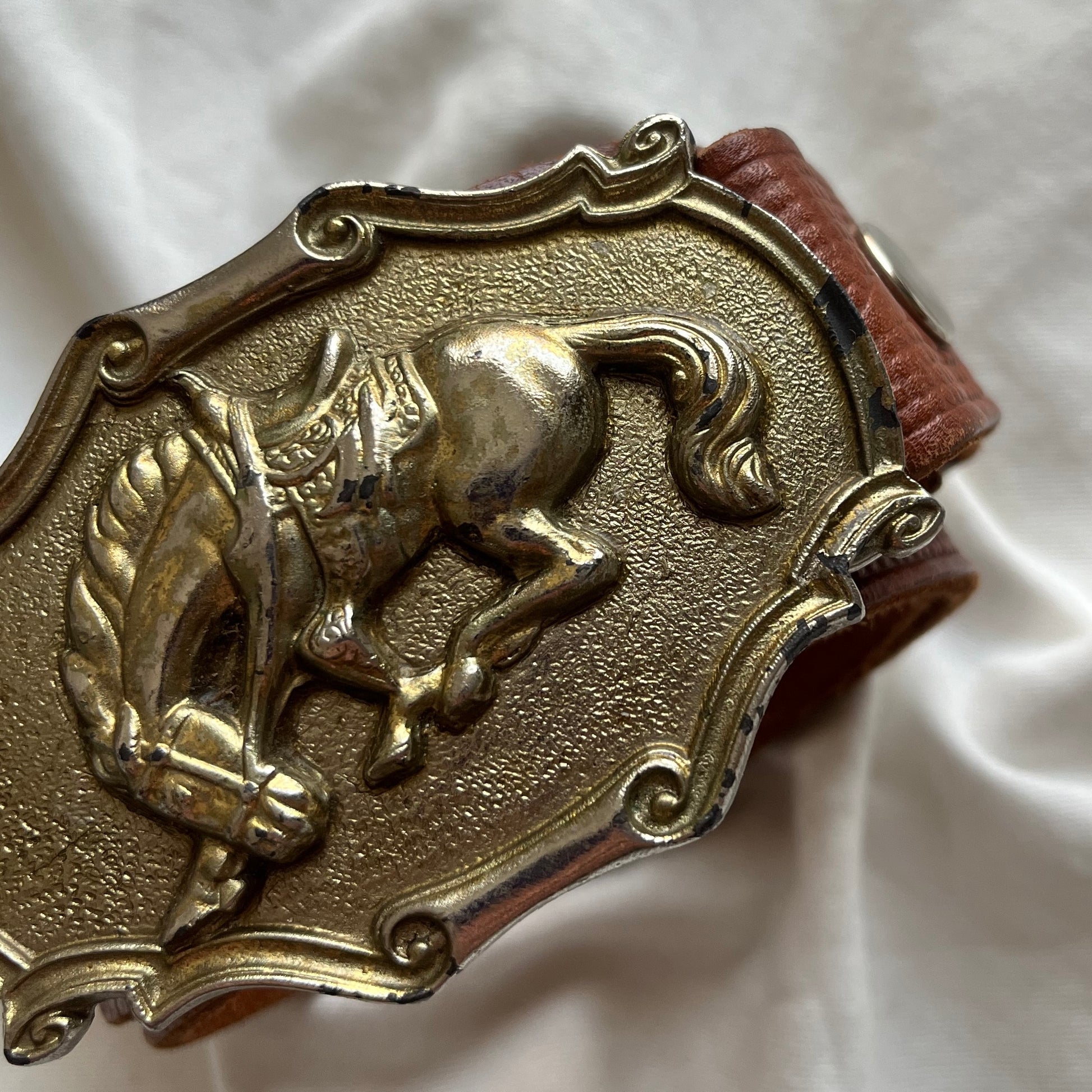 cinto vintage em couro legítimo com fivela de metal. banho dourado com leve desgaste em alguns pontos, vide fotos.