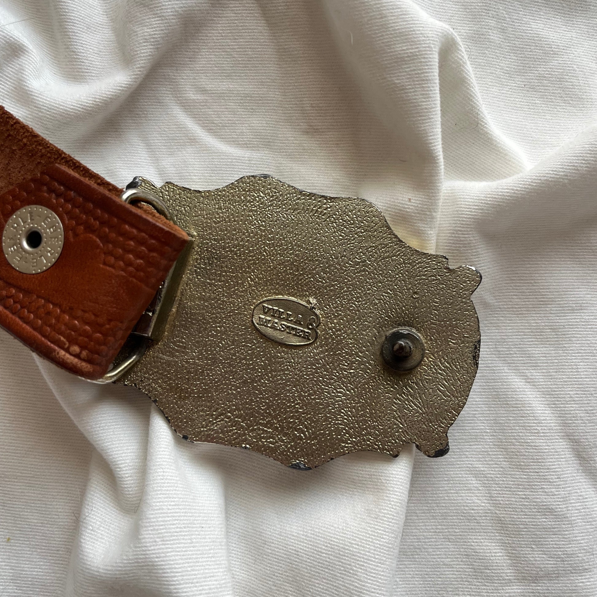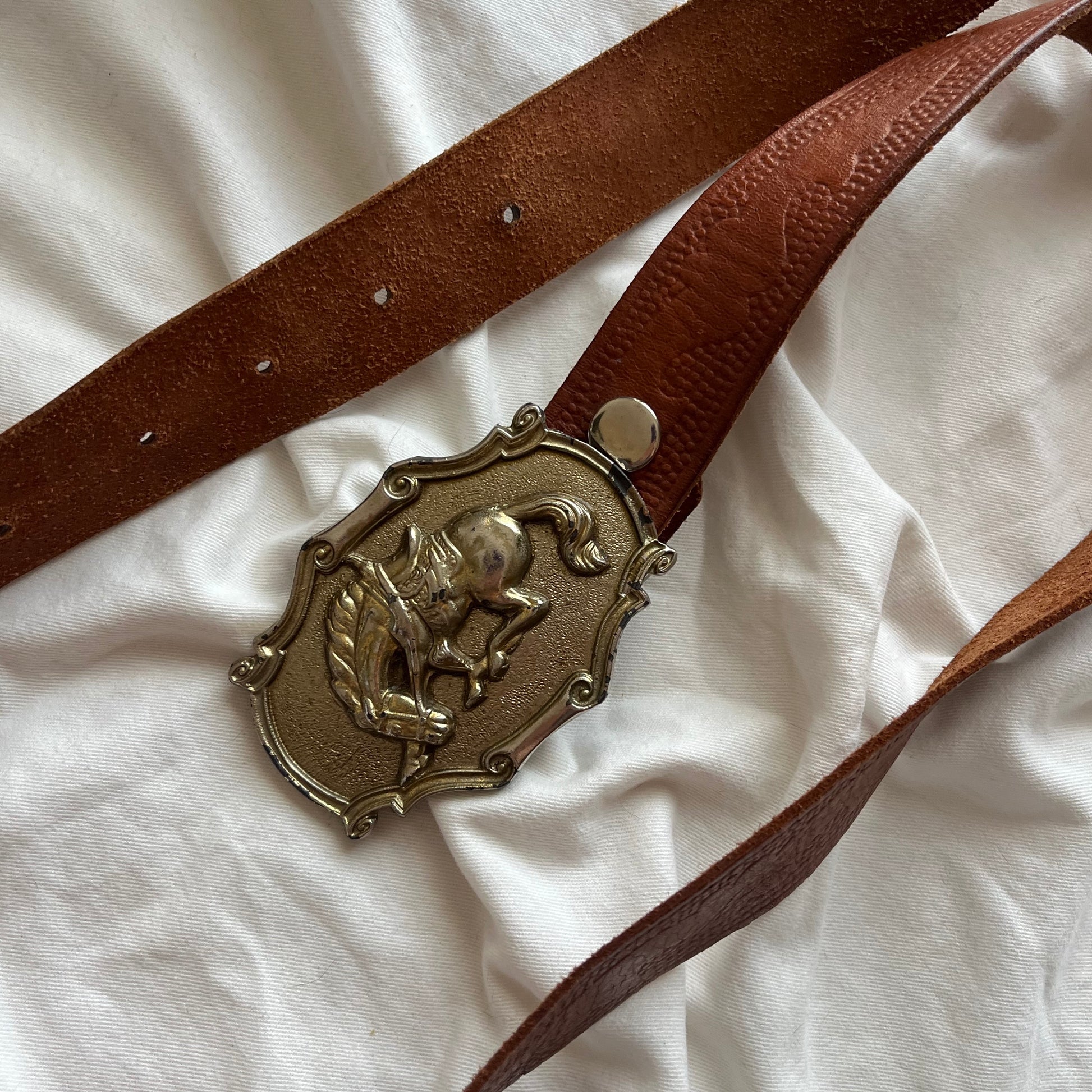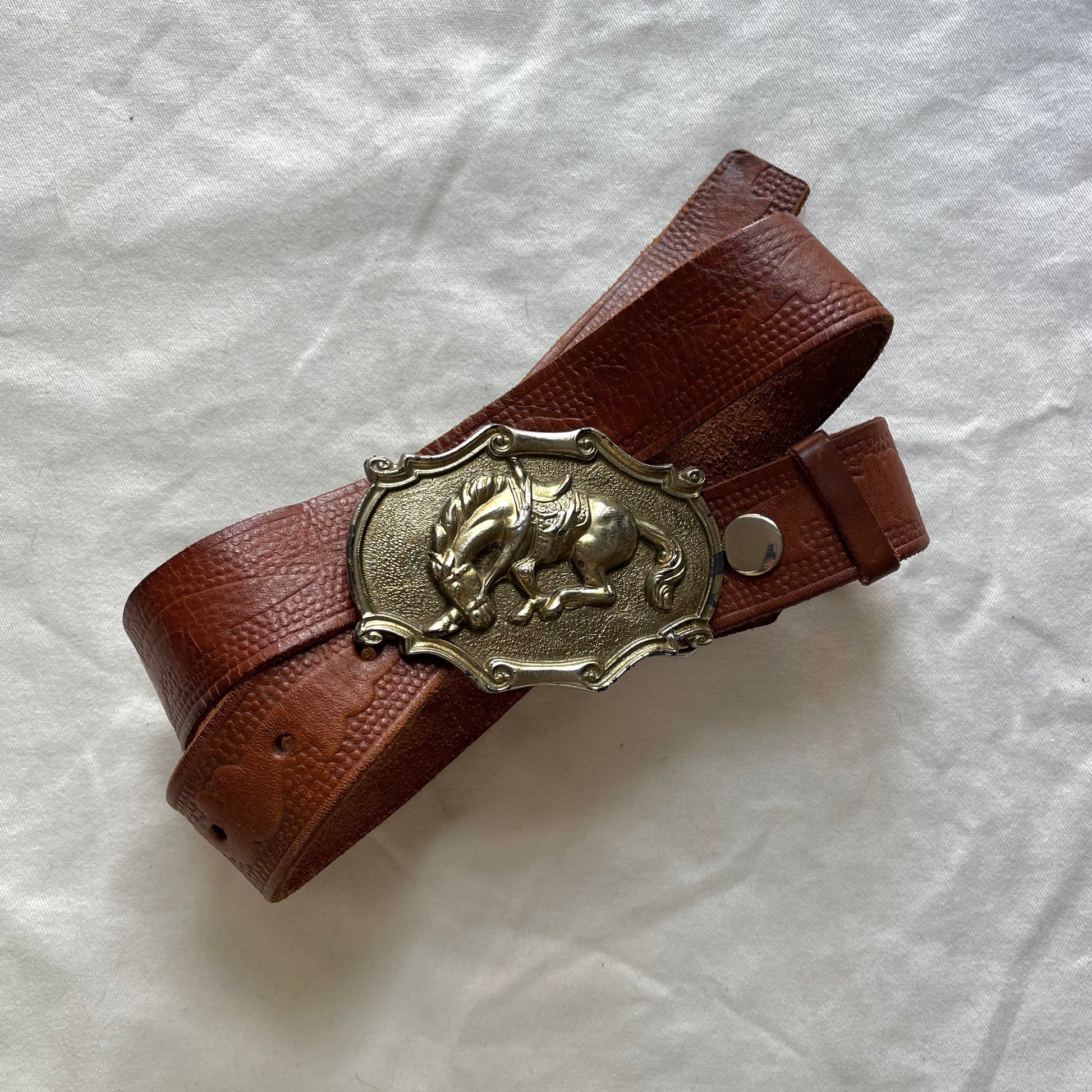cinto vintage em couro legítimo com fivela de metal. banho dourado com leve desgaste em alguns pontos, vide fotos.