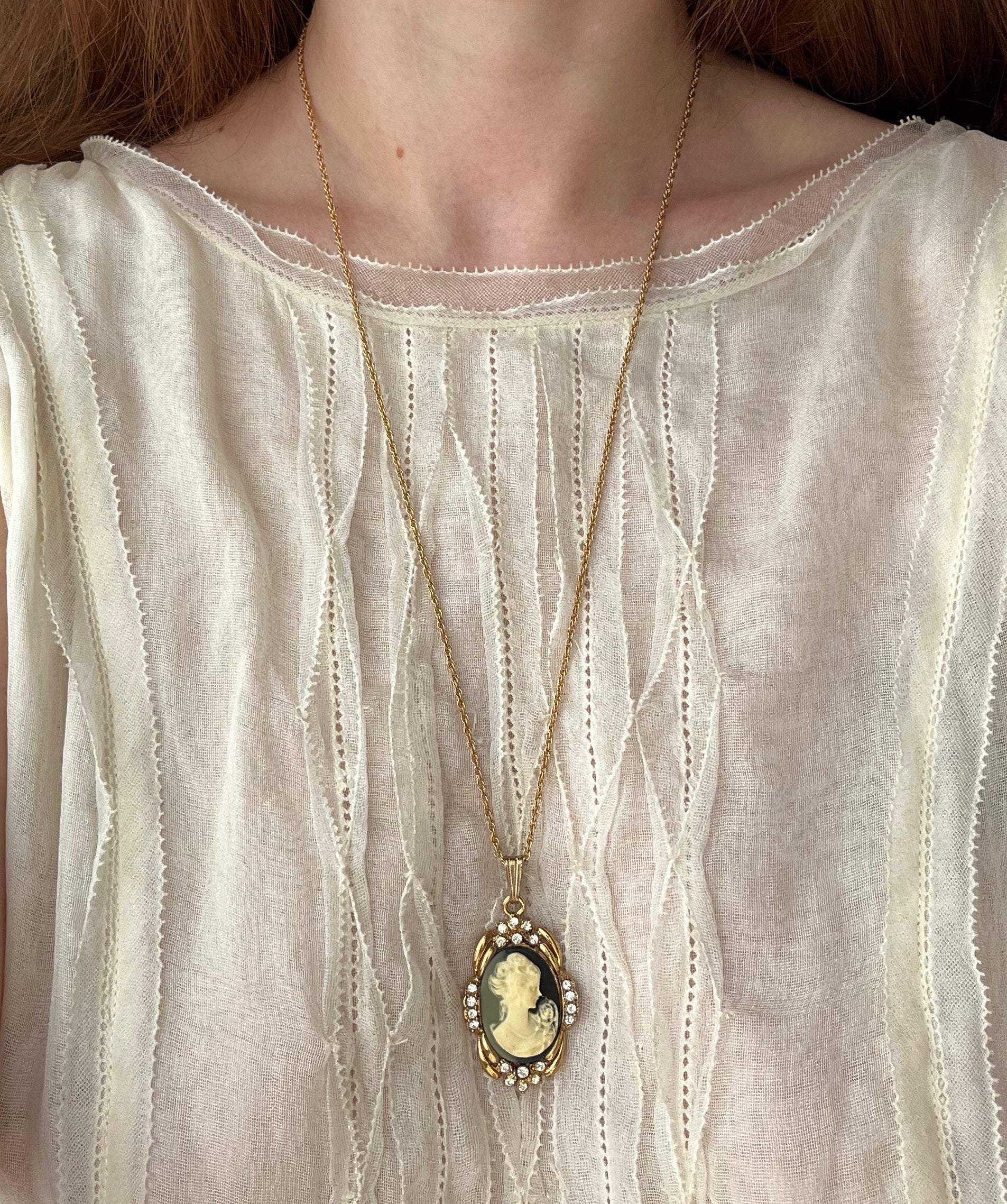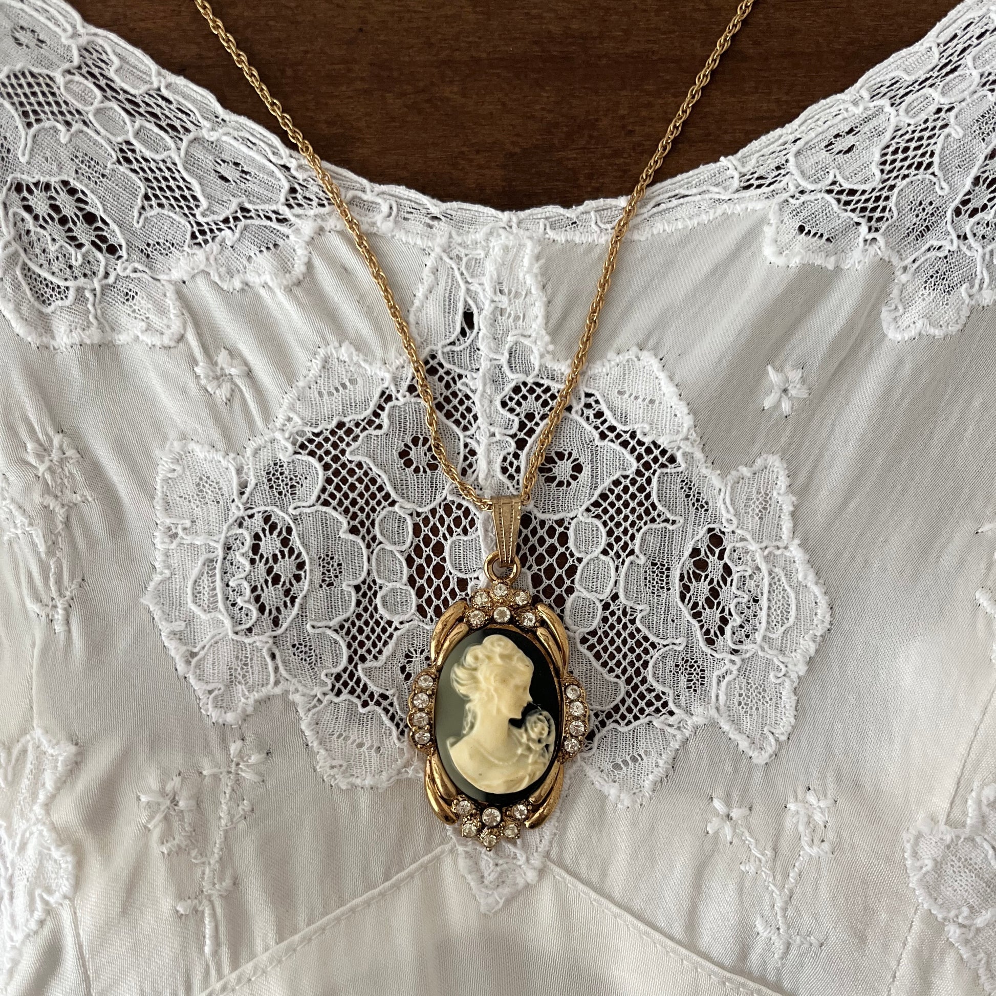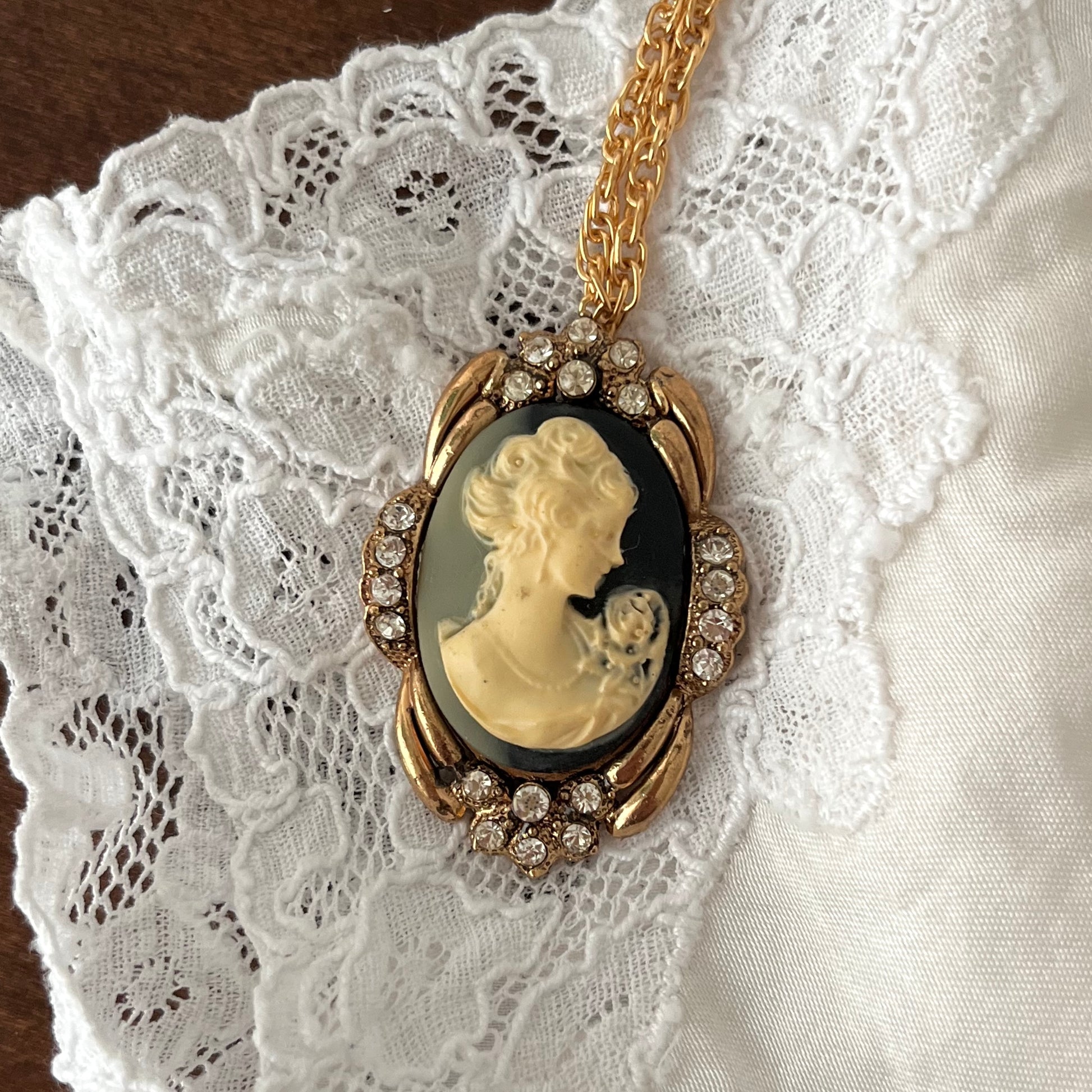 pingente camafeu vintage, antigo estoque americano dos anos 90. semijoia de boa qualidade. camafeu em resina. em ótimo estado de conservação.