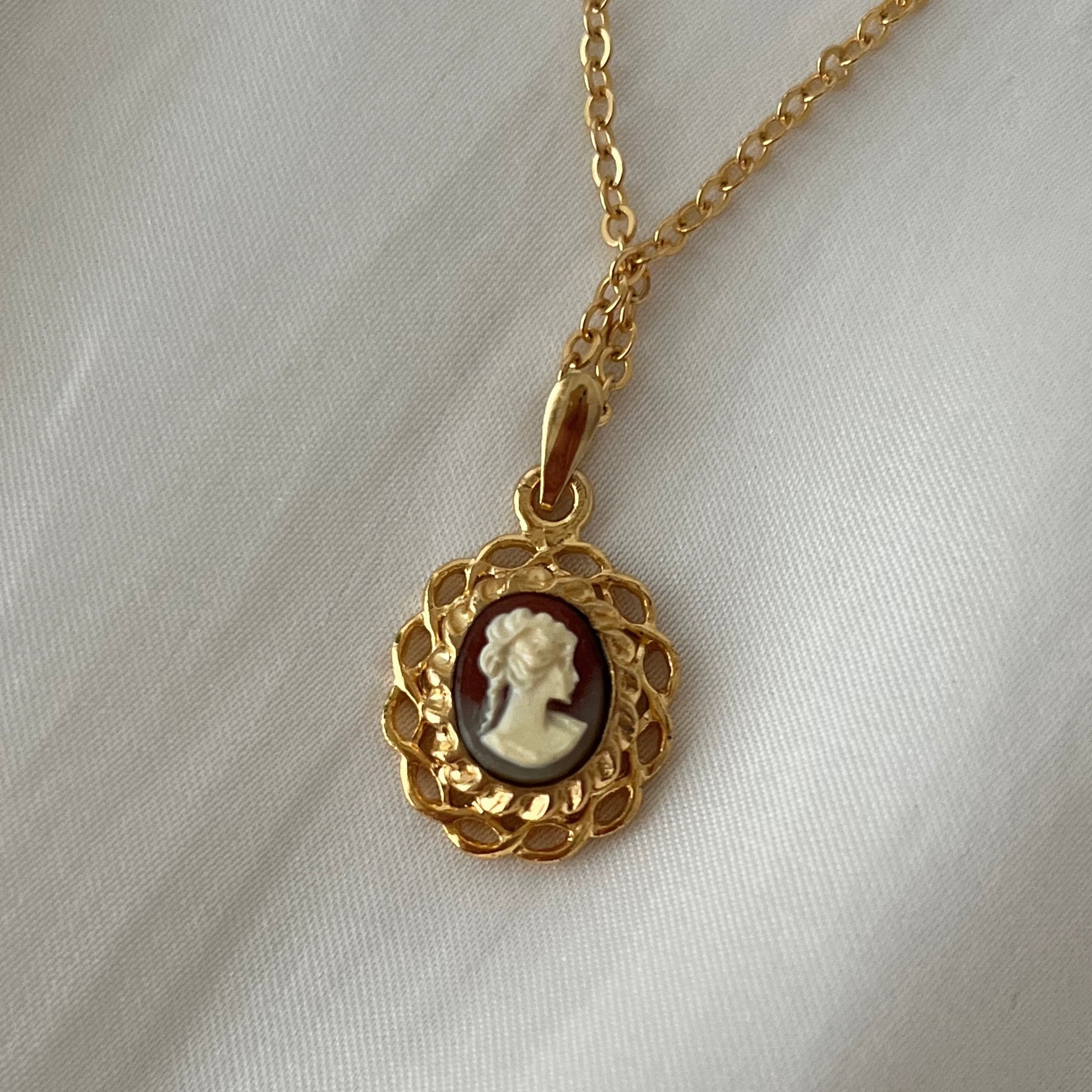 pingente camafeu vintage, antigo estoque americano dos anos 90. semijoia de boa qualidade. mini camafeu em resina. em ótimo estado de conservação.