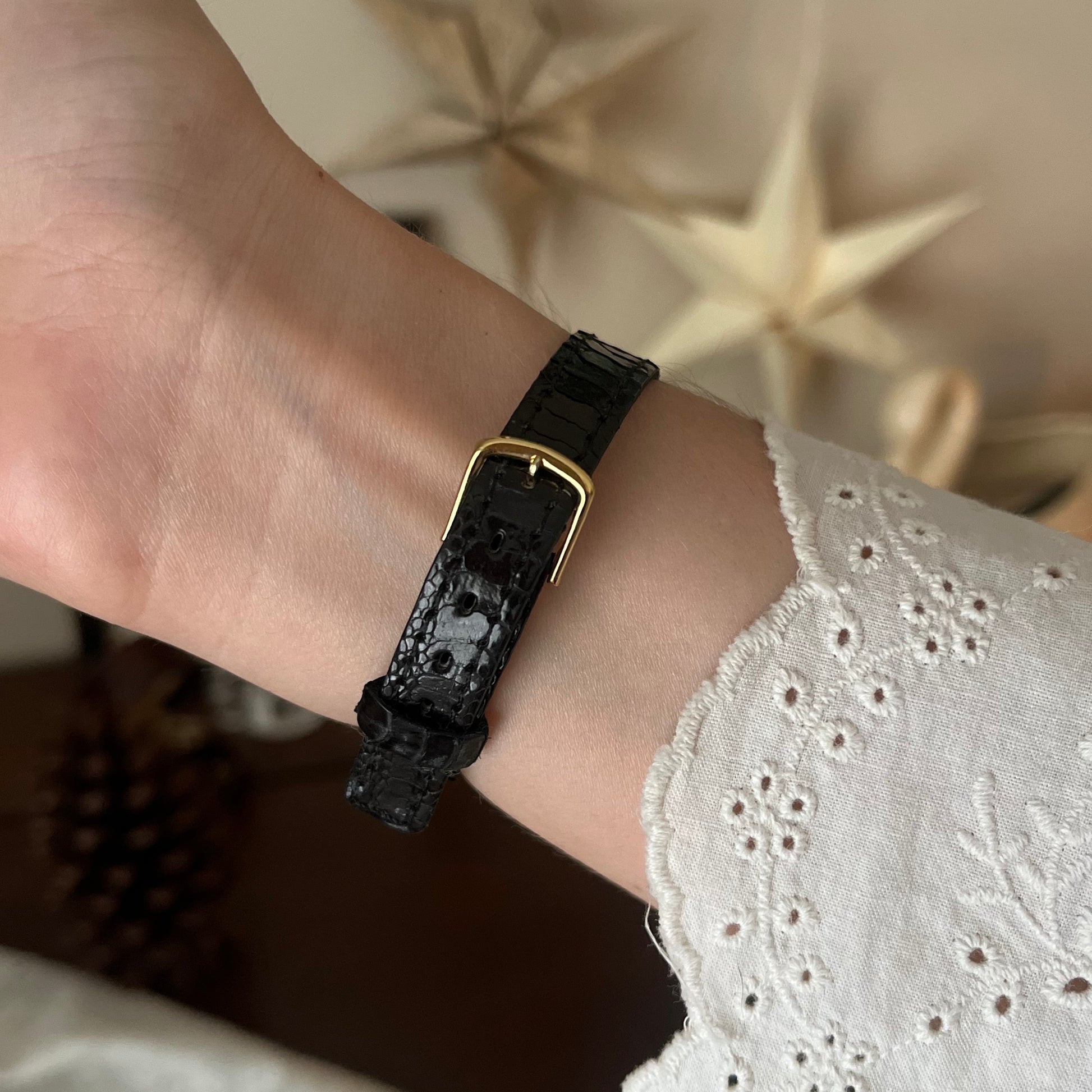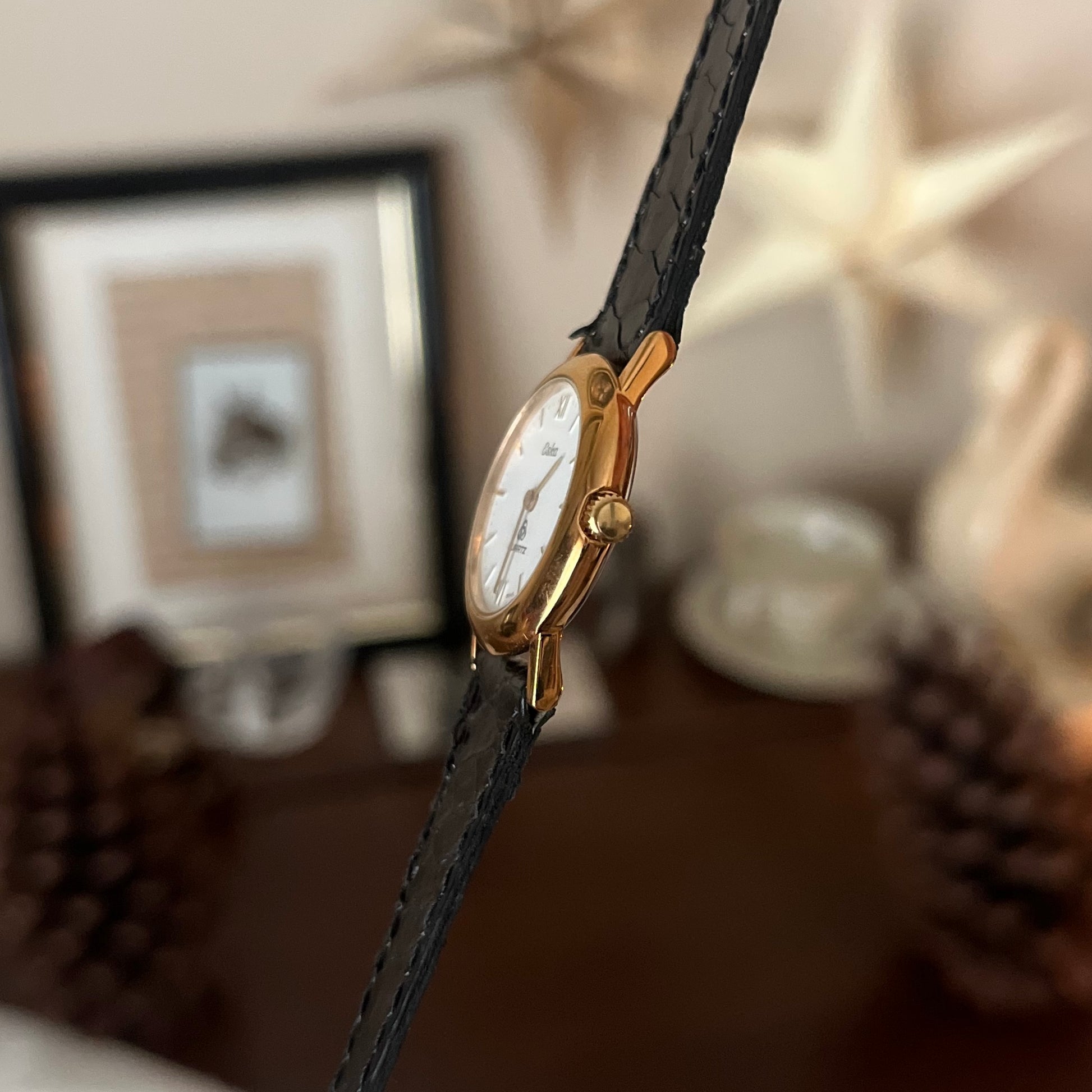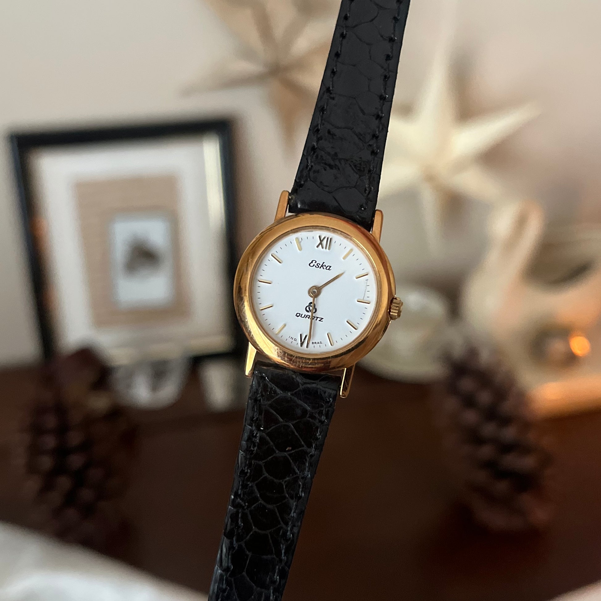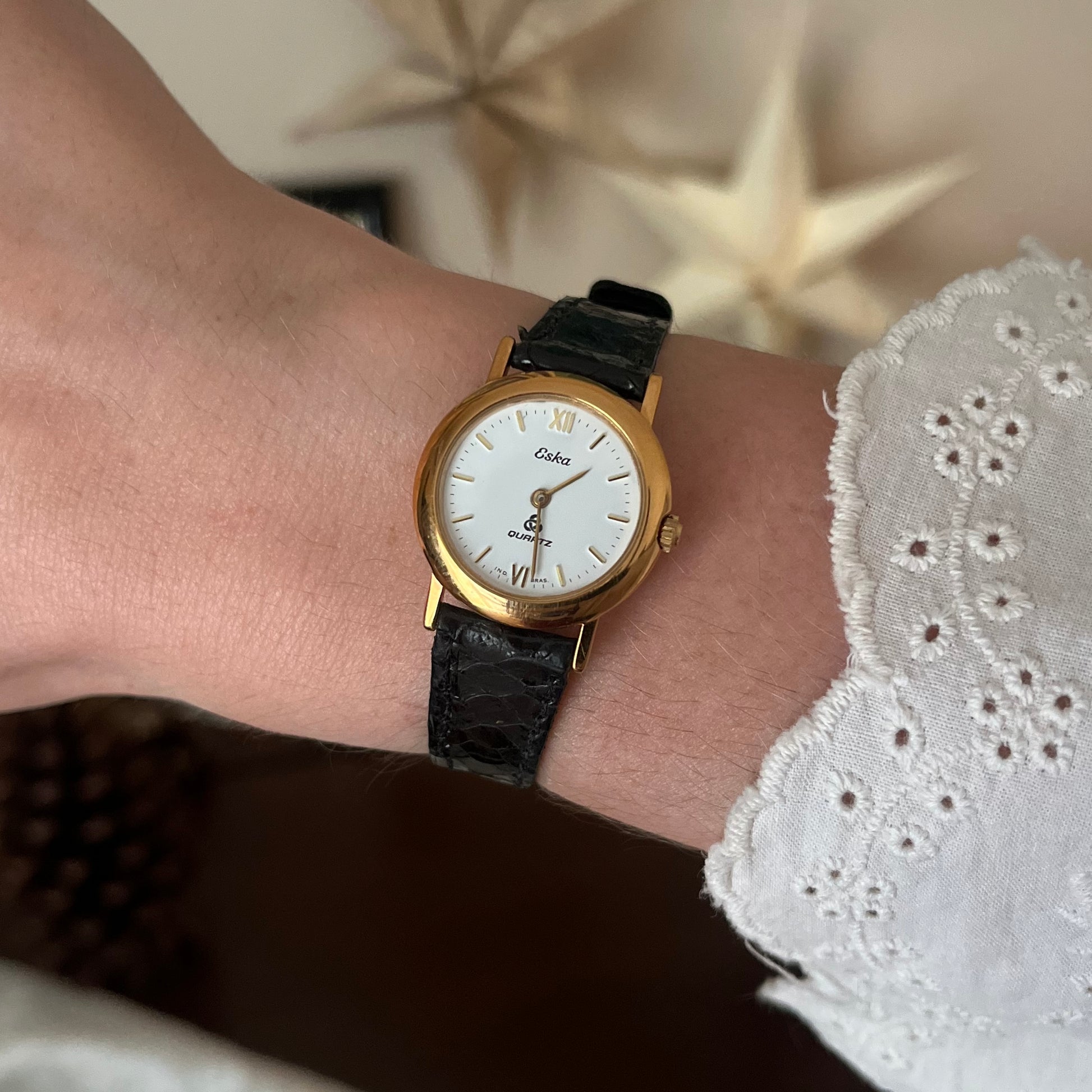relógio eska vintage, funcionando à bateria. em excelente estado de conservação. pulseira de couro texturizada. caixa fina e elegante.