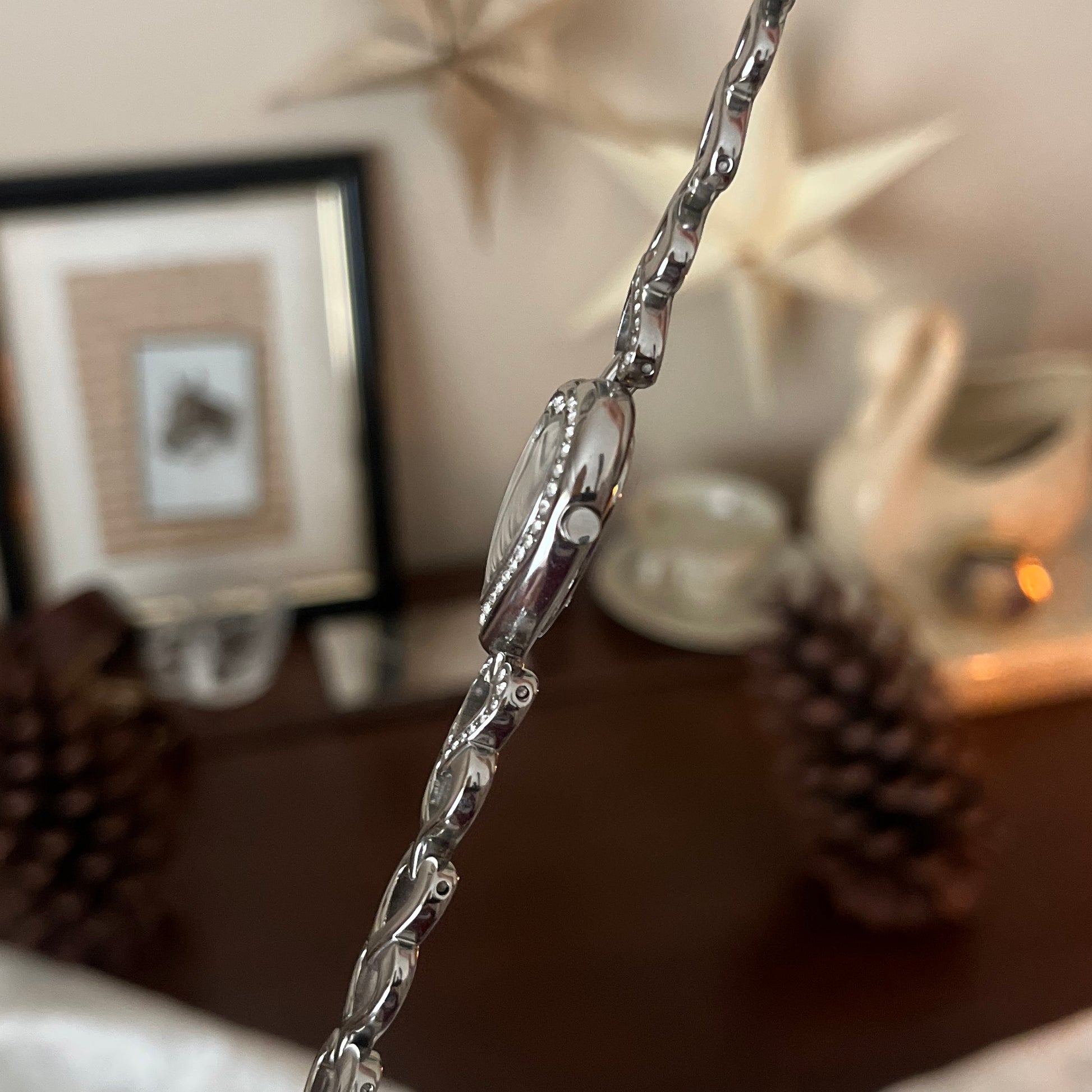 caixa mede 20mm x 20mm. pulseira mede 20cm e possui elos móveis permitindo auto ajuste de 1,5cm a 3cm. também pode ser ajustada em relojoaria.