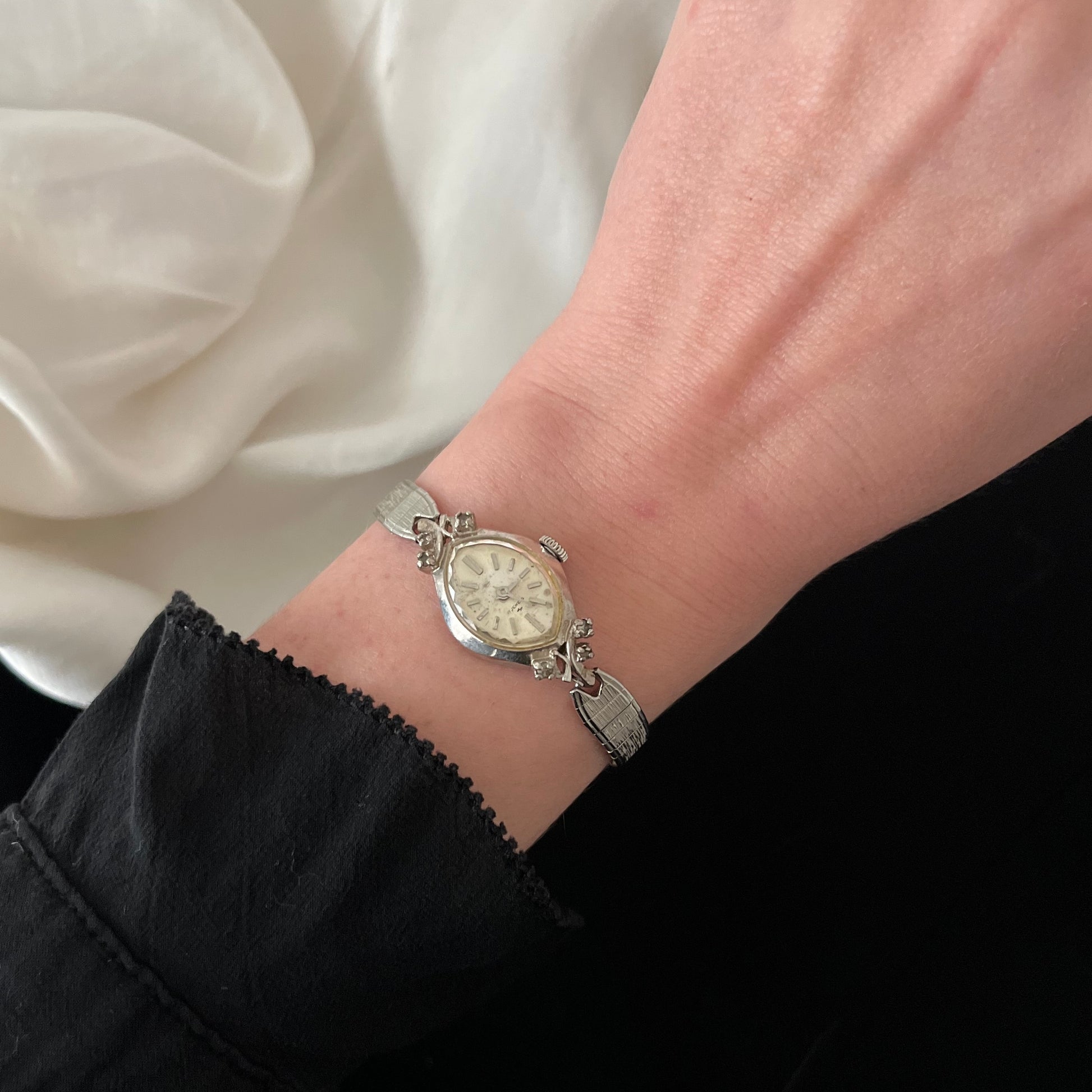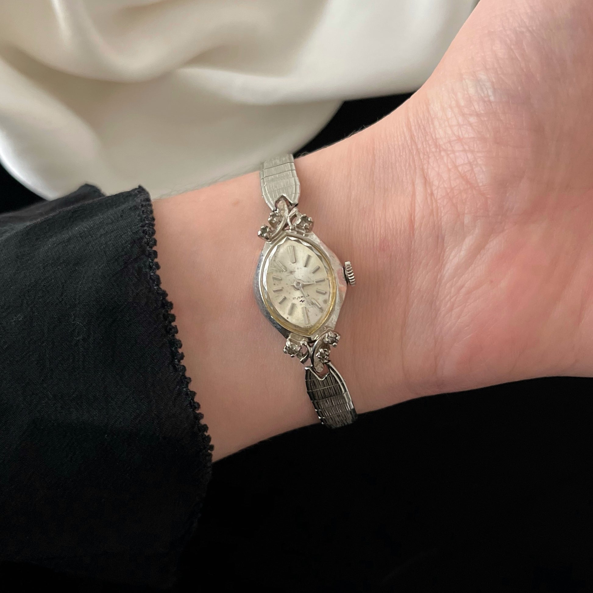 relógio seiko vintage dos anos 80. funcionando à corda, maquinário suíço com 17 jóias. banho de ouro branco. mostrador possui pequenas ranhuras, vide fotos.